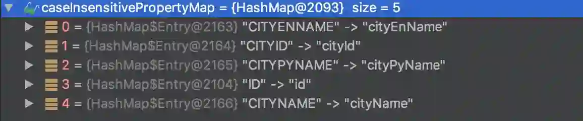 因为CityPO的列名是完全根据数据库列名驼峰式命名后得到的,因此Mybatis提供了一个配置项。开启开配置项后,在匹配时,能够根据数据库列名找到对应对应的驼峰式命名后的字段。