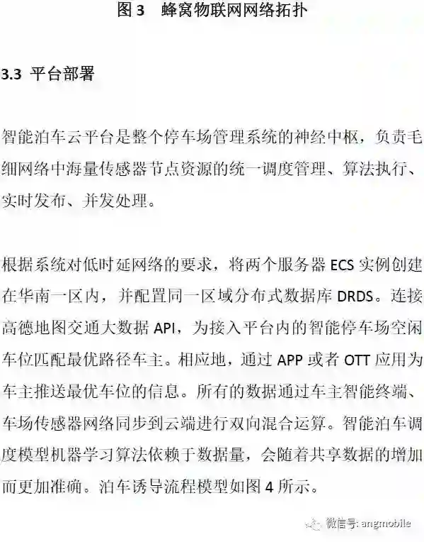 技术层面上,华南理工大学邓广森设计了一种依赖于深度学习算法的智慧停车场系统,解决停车场双向引导问题;吉林大学冯璐璐提出基于泊位选择的物联网泊车诱导路径优化技术,提高停车成功率。随着当前Pre 5G应用逐渐浮出水面,可以在当前LTE设备,甚至于老旧蜂窝网络设备上实现平滑演进、低成本升级部署的窄带物联网技术(Narrow Band Internet of Things,NB-IoT),展现出了强大的万物互联能力。NB-IoT在仅180kHz的带宽上,表现出了低时延、海量连接和超低功耗的优势。