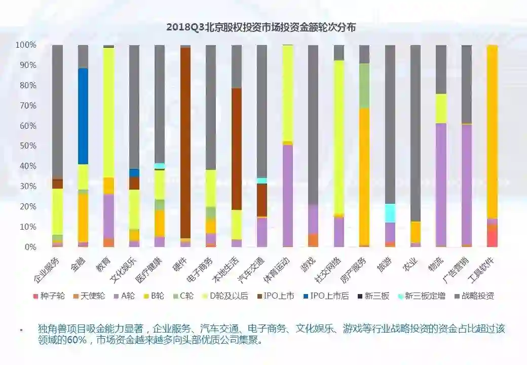 企业服务、金融、教育成为 2018 年 Q3 北京股权投资市场最热门三大赛道。其中,企业服务再次拔得头筹,投资热度依旧不减。而硬件行业吸金能力最强。