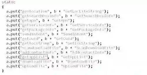 大家不需要看懂代码,宅宅把单词的意思翻译了一下,大意就是它不仅可以获取你手机里的APP列表、设备ID等,还可以添加联系人、打电话、发短信。