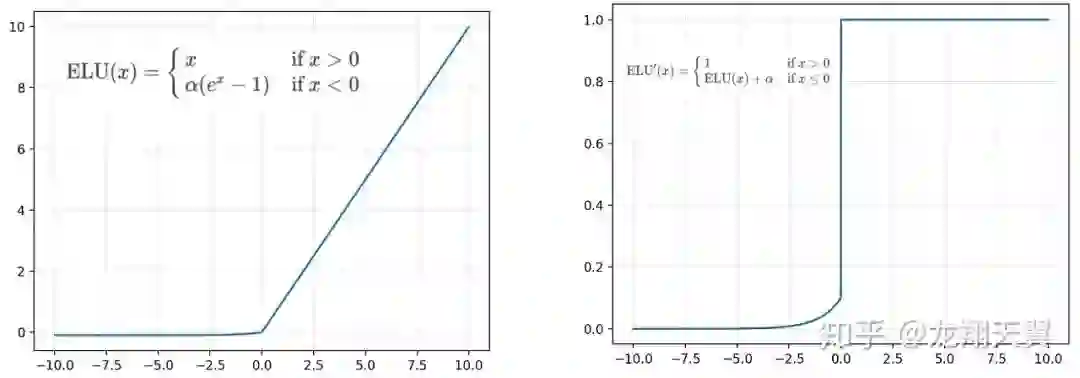 在微分时,两部分都是线性的;而 ELU 的一部分是线性的,一部分是非线性的。