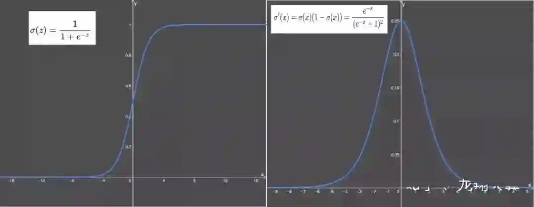 梯度消失:输入值较大或较小(图像两侧)时,sigmoid 函数值接近于零。sigmoid 导数则接近于零,导致最终的梯度接近于零,无法实现更新参数的目的;