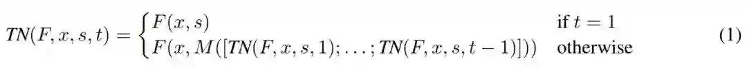 其中s是一个初始状态,t ≥ 1是ThinkNet的时间步长,M([z1; ...; zt−1])是任意的混合函数(可以是静态函数或者是可训练的神经网络),该混合函数将之前所有的输出组合成一个新的状态。然后优化函数 L(TN(F, ., ., T )),而不是损失函数L(F(., .))。