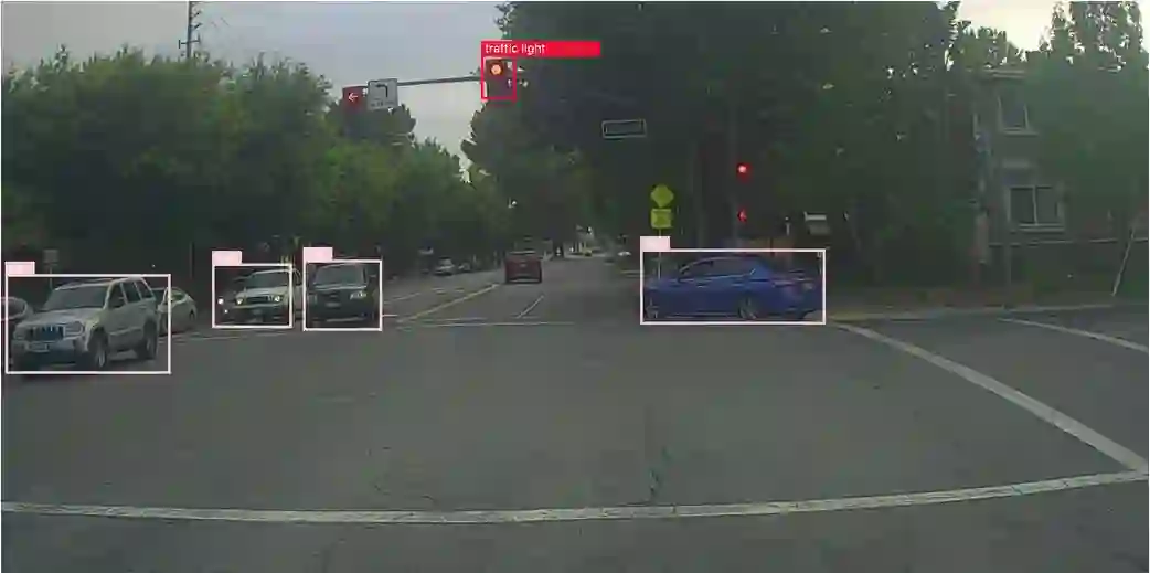 你会看到YOLO非常善于挑选出微妙的物体,正如我们在下面复杂的街景中所看到的那样。