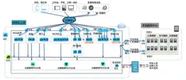 图 美年大健康选择CloudCare作为数字化解决方案及托管服务商搭建的混合云架构示意图(部分)