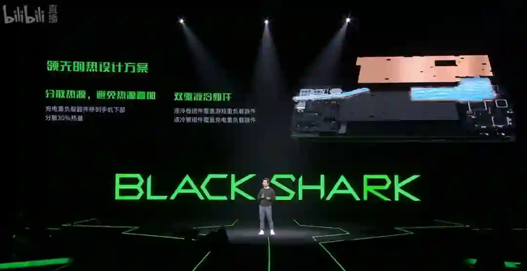 炫酷的游戏灯效,幻色呼吸LOGO灯。全方位的体验,一个也不能少。骁龙855平台,针对大型游戏做了特殊的调教。主处理器受散热限制,一般是无法一直全速工作的。这次黑鲨带来了全新的液冷3.0,塔式全域液冷系统。