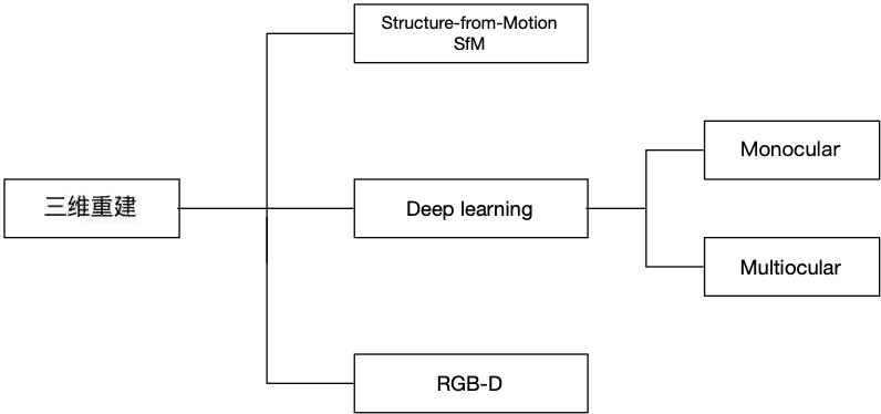本综述主要介绍基于单目monocular的三维重建方法,主要分为基于SfM三维重建和基于Deep learning的三维重建方法,另外由于多视觉几何涉及大量的矩阵、线性代数和李群等数学概念,本综述不做进一步研究,详细可参考经典多视觉几何MVG。