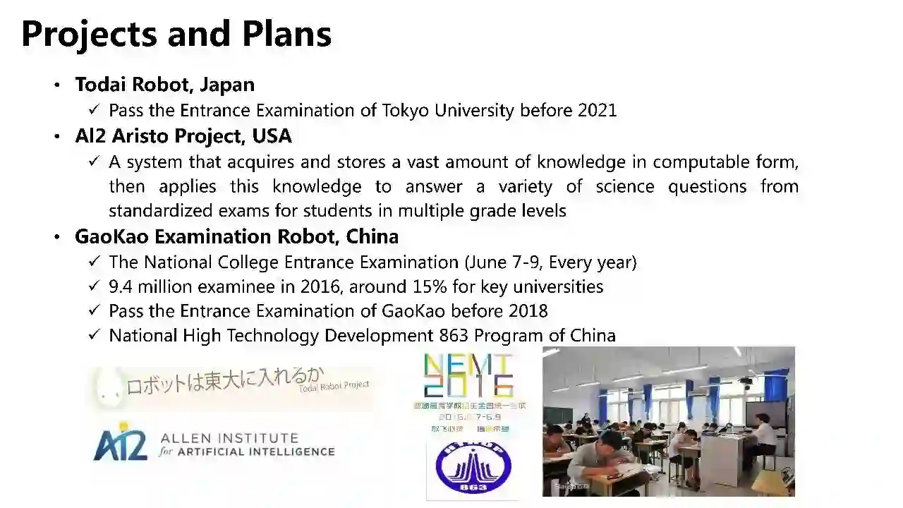 【导读】前一段时间,学霸君和准星云学的机器人解答2017年高考数学科目的试卷,并且学霸君机器人Aidam还与6位高考状元实时PK,拿到134分的高分。高考机器人是人工智能技术应用的一个重要场景。我们来看下来中科院自动化所赵军研究员的机器阅读在高考机器人中的研究与应用。