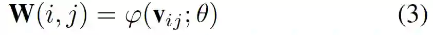 其中v_ij是与i, j相关联的向量,也是权重预测网络的输入,其可表示为: