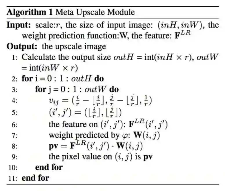 Meta-Upscale模块的算法细节如下图所示: