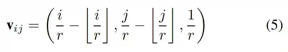 首先,放大模块应该找到与像素(i, j)对应的像素(i′, j′)。接着,放大模块需要一组特定的滤波器来映射像素(i′, j′)的特征以生成这一像素(i, j)的值。以上可公式化表示为: