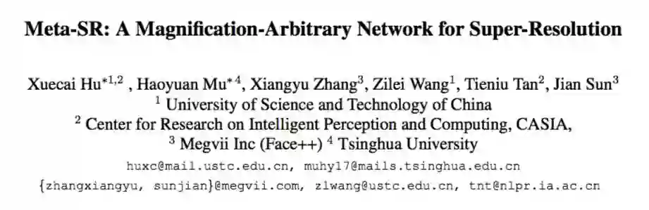 论文名称:Meta-SR: A Magnification-Arbitrary Network for Super-Resolution