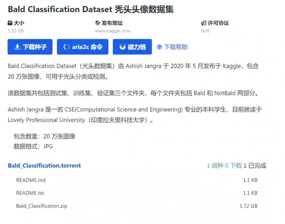 据介绍,Bald Classification Dataset(秃头数据集)由 Ashish Jangra 于今年 5 月发布。