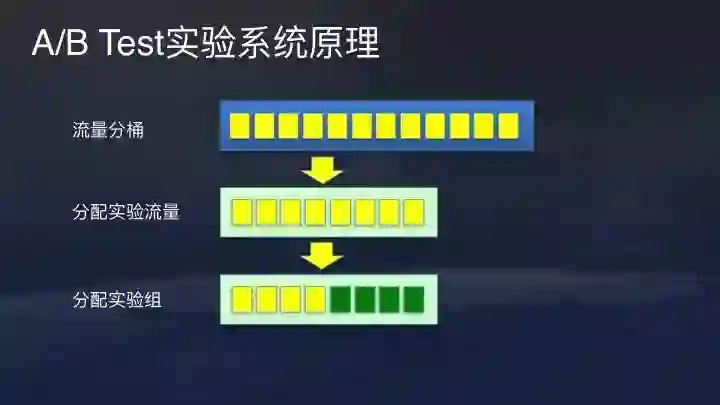 这是头条A/B Test实验系统的基本原理。首先我们会做在离线状态下做好用户分桶,然后线上分配实验流量,将桶里用户打上标签,分给实验组。举个例子,开一个10%流量的实验,两个实验组各5%,一个5%是基线,策略和线上大盘一样,另外一个是新的策略。