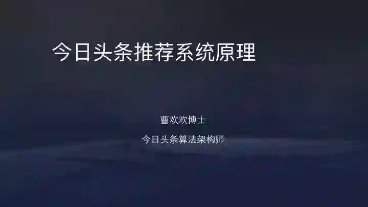 本次分享将主要介绍今日头条推荐系统概览以及内容分析、用户标签、评估分析,内容安全等原理。