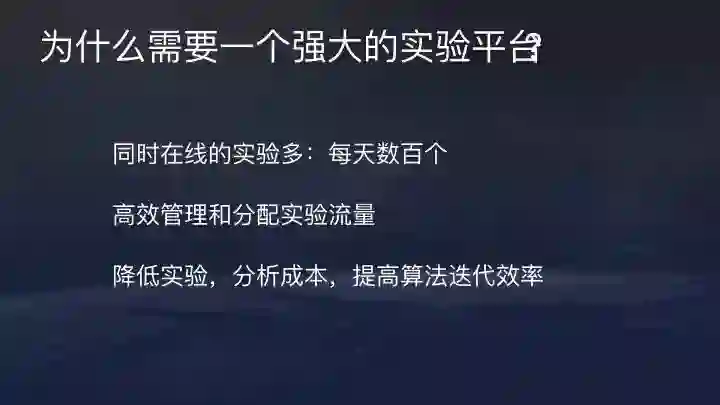强大的实验平台非常直接的优点是,当同时在线的实验比较多时,可以由平台自动分配流量,无需人工沟通,并且实验结束流量立即回收,提高管理效率。这能帮助公司降低分析成本,加快算法迭代效应,使整个系统的算法优化工作能够快速往前推进。