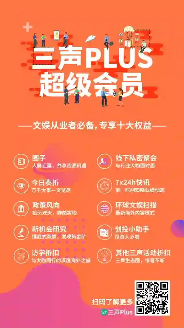 三声圈子是一个聚集大文娱相关行业的专业资深人士的深度交流社区,是仅针对三声超级会员开放的升级服务。第一时间的独家的行业消息,我们将优先告诉三声圈子的朋友们,同时还会建立高门槛、细分行业的群组,展开高效率线上互动。