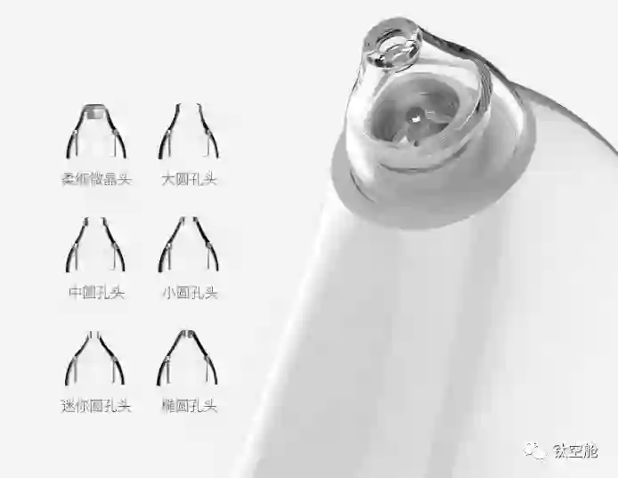 迷你圆孔吸头 :吸力轻柔,孔径只有绿豆大小。专门呵护脆弱肌、角质层薄的人。