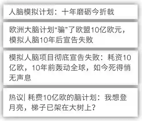 7 月底,国内许多科普公众号突然发布头条新闻,以铺天盖地之势报道了欧盟人脑计划失败的新闻,所用的标题也非常吸引眼球,大有语不惊人死不休之势。