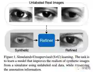 随着图形学最近得到的进步,使用合成的图像训练模型变得更加容易了,这能免除对数据进行注释的昂贵花费。但是,由于合成的图像和真实图像分布之间存在差距,从合成的图像学习可能无法实现期望的性能。为了缩小这一差距,我们提出模拟+无监督(Simulated+Unsupervised,S + U)学习,它的任务是学习一个模型,以使用未标记的真实数据来改善模拟器的输出的真实感(realism),同时保留来自模拟器的注释信息。我们为S + U学习开发了一种使用对抗网络的方法,类似生成对抗网络(GAN),但我们的方法使用合成的图像(而非随机向量)作为输入。我们对标准GAN算法进行了几个关键的修改,以保留注释信息,避免失真(artifacts)并保持训练稳定:(i)一个“自正则化”项,(ii)一个局部对抗损失( local adversarial loss),以及(iii)使用改善后的图像的历史信息来对判别器进行更新。我们的研究表明,这一方法能够生成高度逼真的图像,并且通过定性研究和用户研究证实了这一点。我们通过训练模型进行视线估计(gaze estimation)和手势估计(hand estimation)进行了定量评估。我们的研究显示,这一方法在使用合成图像方面实现了显著提升,并在没有任何已标注数据的情况下,在 MPIIGaze 数据集得到了 state-of-the-art 的结果。