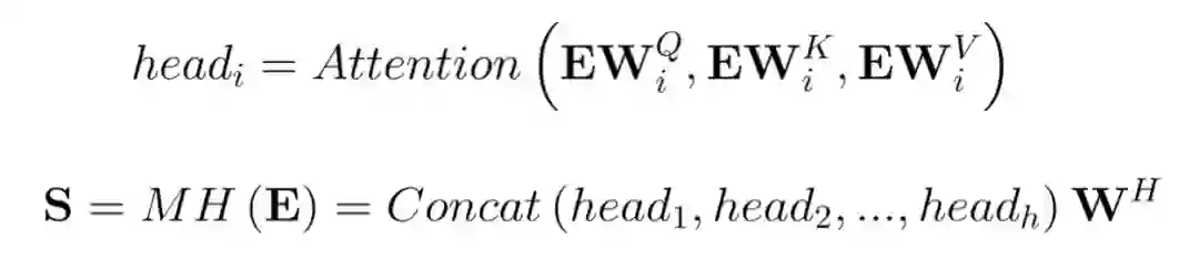 然后将投影后的矩阵输入到 Multi-Head Attention。计算公式如下: