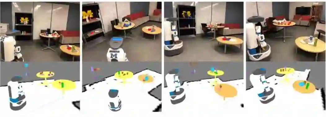 第二篇文章提出一种名为上下文时间一致性建图(CT-Map)的语义地图构建方法,该方法使用了粒子滤波算法,它在检测物体的同时还可以实现六个自由度的定位。作者在配备了RGB-D传感器的密西根进度提取机器人(Michigan Progress Fetch robot)上验证了CT-Map方法的有效性。
