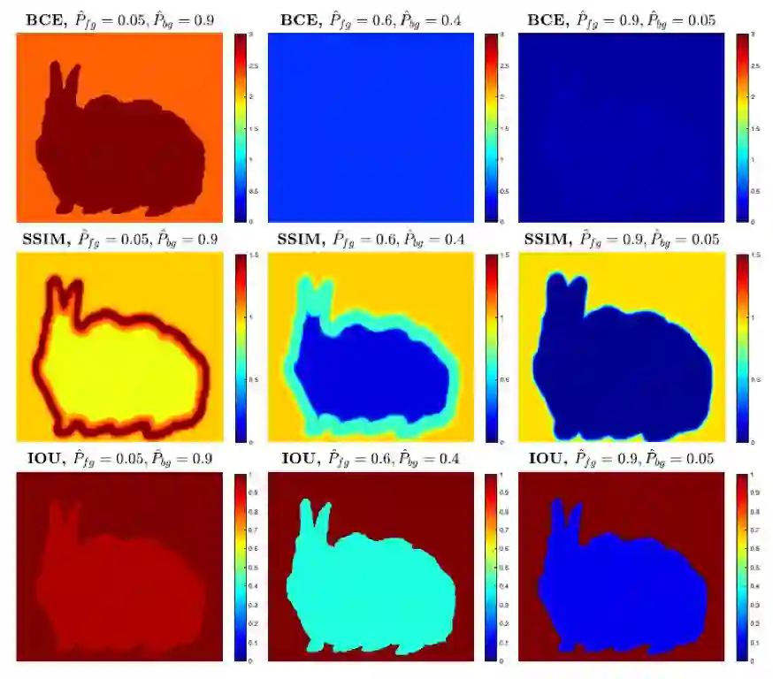 可以看到 Fig 3 的这三行热力图变化,颜色越红代表损失对待该像素点的权重越大,也就是越重视该点,越蓝表示权重对待越小。从第一行的 BCE 损失变化可以看出,BCE 损失是 pixel-wise 的,它是一个非常公平的损失函数,对待前景和背景一开始区别不大,训练过程中几乎达到了任何像素点都一视同仁。