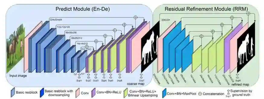 这是一篇发表于 CVPR 2019 的关于显著性目标检测的 paper,BASNet:Boundary-Aware Salient Object Detection 显而易见就是关注边界的显著性检测,主要创新点在 loss 的设计上,使用了交叉熵、结构相似性损失、IoU 损失这三种的混合损失,使网络更关注于边界质量,而不是像以前那样只关注区域精度。在单个 GPU上 能跑 25 fps,在六种公开数据集上能达到 state-of-the-art 的效果。作者也在 Github 上放出了源码: