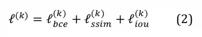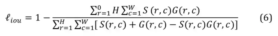 是结构相似性损失,SSIM 就是 structural similarity index 的意思,这是本文关注边界的重点部分,是为了评估图片质量的,捕捉结构化信息,是用于学习显著性目标与 GT 之间的结构化信息的。结构相似性损失的表达如上面的公式(3)所示。