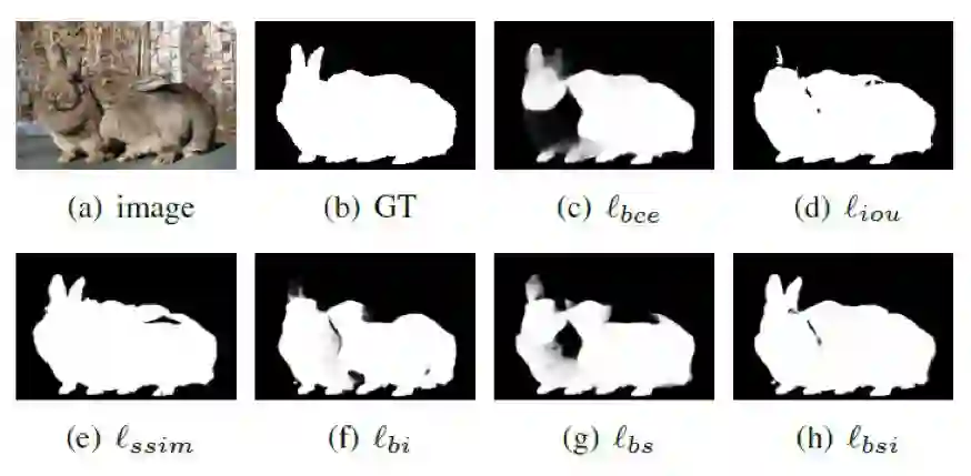BASNet 该方法主要的亮点在于引入结构相似性损失,最后三种损失(BCE 损失,SSIM 损失,IoU 损失)相加,同时考虑,着眼于解决边界模糊问题,更注重边界质量,因为在结构相似性损失下,边界的损失会比显著性物体内部或其他地方赋予的权重更高。文章也尝试从三种层次上解答为什么设计三个损失,结构还算清晰。但是个人认为主要还是结构相似性损失的引入比较有价值。