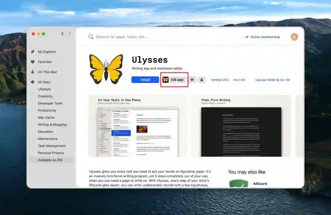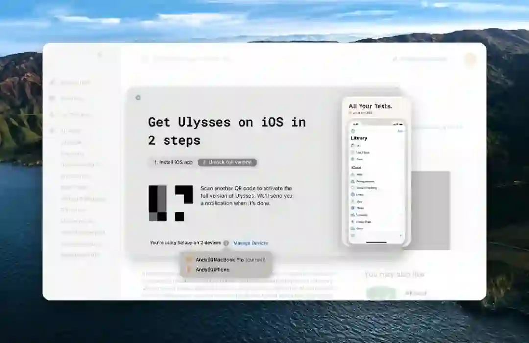 作为 Setapp 中最受欢迎的应用之一,Ulysses 在适配新的解锁机制的同时也提供了一段时间的缓冲期。在 8 月 31 日之前,通过 iCloud 账户解锁付费功能的还能继续使用,之后就需要在 Setapp 购买新的子席位。