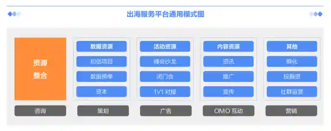 出海服务平台的业务核心在于为出海过程中不同参与主体提供交互空间,平台属性是其最重要的核心竞争力。通常情况下,出海服务平台通常不直接参与出海交易,但随着当下各类出海设施不断完备,不少出海服务平台也在积极布局“出海业务”及“出海服务”的交易环节,尝试裂变出更多商业模式。