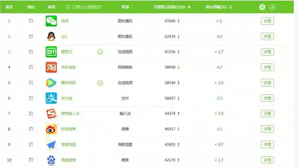 在艾瑞数据发布的2018年1月份移动App排行榜前10位中,有百度旗下的爱奇艺与百度搜索,有腾讯旗下的微信、QQ、腾讯视频与搜狗输入法,阿里巴巴也有手机淘宝、支付宝、新浪微博与高德地图四款产品入选,而360公司无一款产品,在前20位中,奇虎360也只有一款360手机安全卫士入选。