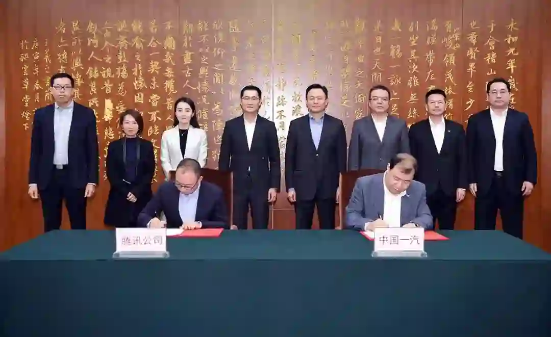 4月15日,腾讯公司与中国一汽正式签署战略合作框架协议,展开全方位战略合作。