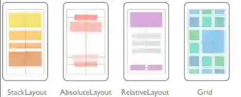 Xamarin.Forms提供了5种布局,我这里只截取了4种,第五种是ScrollView,个人觉得..这个的操作作用大于布局作用..所以本章就不讲了.