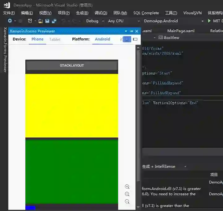 大家可以看到,我在StackLayout 中的控件里面加了2个属性: