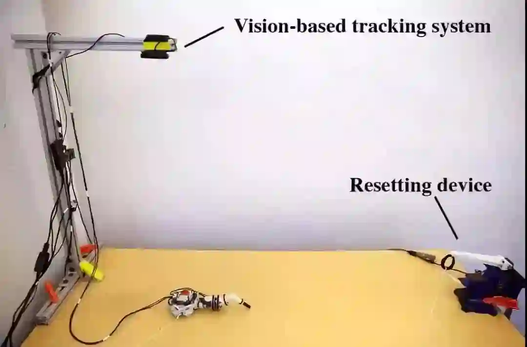 迪士尼研究院的研究者们提出了一种自动学习环境,直接在模块化有腿机器人上建立控制策略。这一环境通过计算奖励促进了强化学习过程,计算过程是利用基于视觉的追踪系统和将机器人重新放回原位的重置系统进行的。