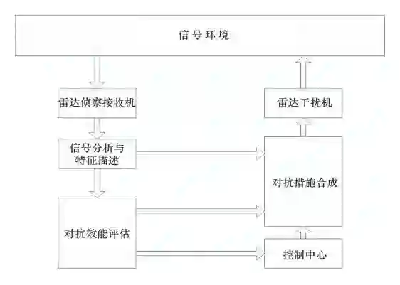 由美国国防预先研究计划局启动的自适应雷达对抗,目的是开发短时间内对抗敌方新型、未知雷达的能力,是第一个真正意义上的认知电子战项目。该项目是研制一种可以进行信号特征分析、对抗措施合成以及对抗措施效能评估的闭环系统,系统框图如图2所示。