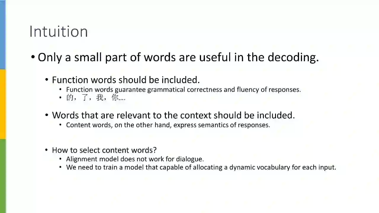 随后,他还以第一作者的身份,解读了北京航空航天大学和微软亚洲研究院于 AAAI 2018 发表的工作 Neural Response Generation with Dynamic Vocabularies。