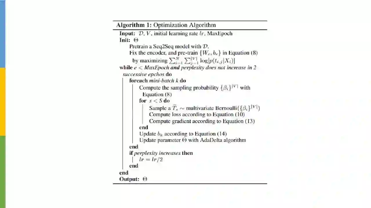 这样一来,我们就可以把词典构建和回复生成这两个损失串在一起,相当于放入一同一个公式里表示,而不是将词典和生成分开单独训练。利用逐次采样得出的结果,来评估动态词典在不同情况下,其相对应的回复生成的损失是什么。