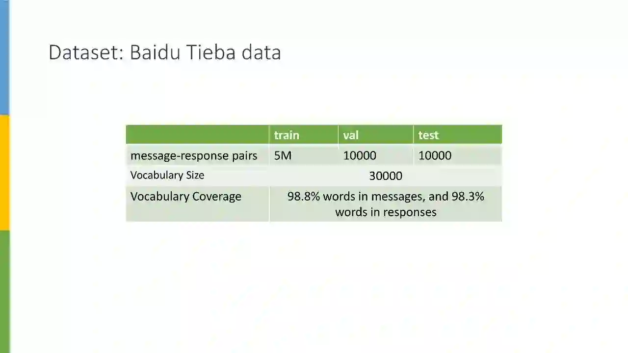 我们做这篇论文的初衷,是为了提出一种不借助繁重工具或算法的回复生成方法。因为无论是复杂模型、后排序、增强学习还是 GAN,都属于一种用时间换精度的方法。