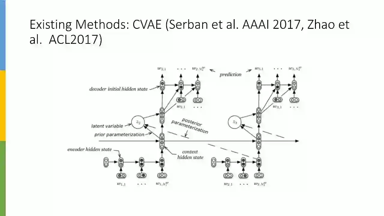 第一种方法是将模型做得更复杂,比如上图这篇论文使用了 latent variable 来解决 boring responses 这个问题。