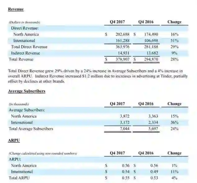这几年在中国也流行一款美国的约会软件——OkCupid,我翻开它的母公司Match集团财报,在跨地区收入和用户这一项,证明了我的想法: