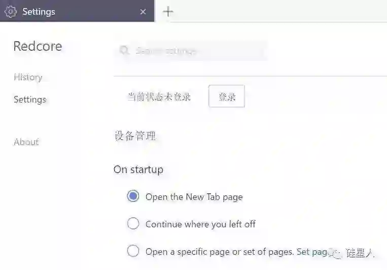 和常见的浏览器一样,这款红芯浏览器也是需要登录的,大概是为了同步浏览数据、保存密码之类的。我暂时没登录,而是点击了右上角汉堡菜单里的 About Redcore,看下浏览器的介绍文档。