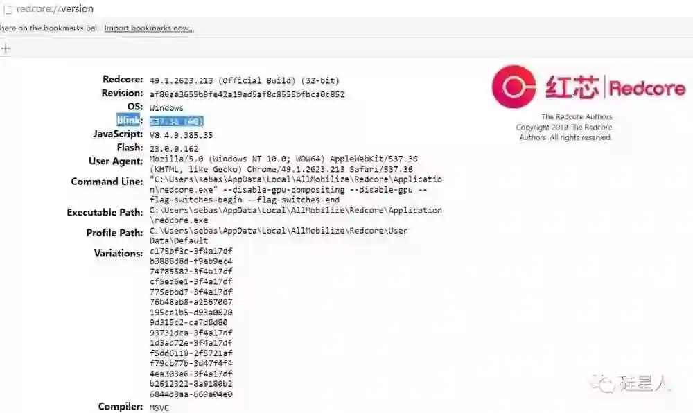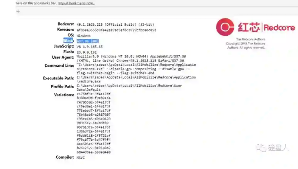 我继续在浏览器里面乱翻,感觉可能找到了杀死红芯的这张截图,注意看图中的 Blink 版本: