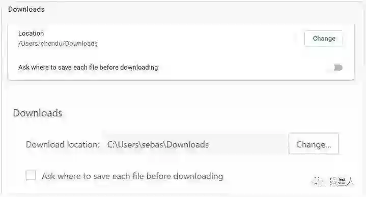 不对啊,等等!我发现,除了部分设置的顺序安排不一致,红芯的设置选项的文案跟 Chrome 基本都是相同的。比如下载文件的路径和是否每次询问路径: