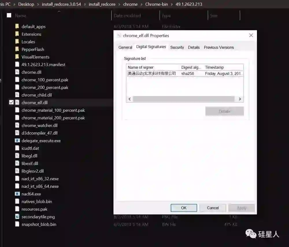 那么,为什么红芯偏偏跟 Chrome 撞了?我开始觉得我可能撞上什么大事了……我又把红芯的安装文件找出来,看看有没有什么异样。
