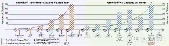 自ViT问世以来,CV开始进入膨胀期,也迎来了新一轮的红利,开始了类似于NLP中Transformer的发展趋势。从CNN开始彻底走向ViT,从supervised到self-supervised,再到大数据预训练,ViT的变种不断增加,带来的性能也在持续提升。