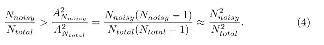 然而对于生成的一个新样本,为噪声样本的前提是K(=2)个样本均为noisy样本,那么其概率经过排列组合之后,其概率明显减小了:
