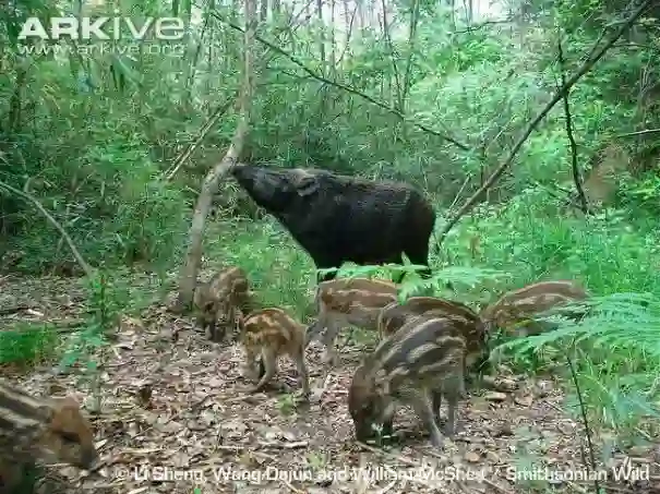 大林猪常会组成20只左右的小群,这个群体有点类似“幼儿园”,主要是由雌猪和幼崽组成的。